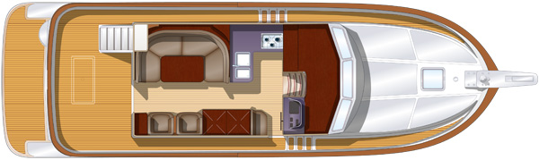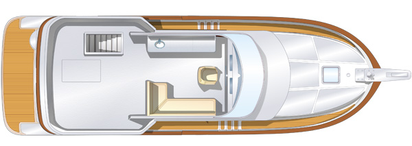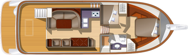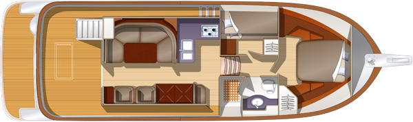 Parkett aus lackiertem Teakholz im ganzen Boot