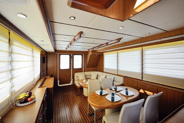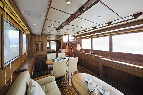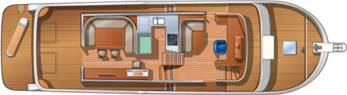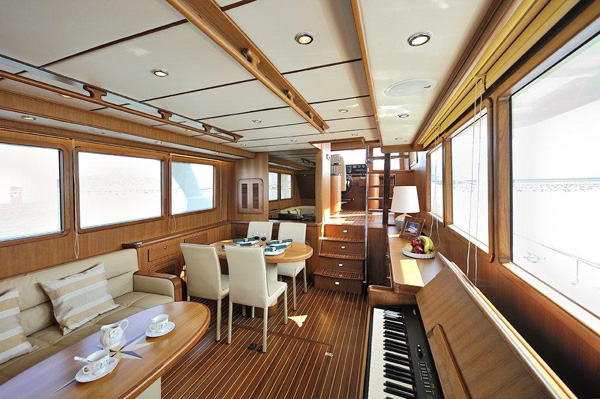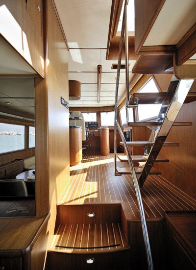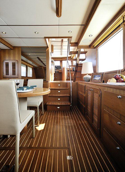 Parkett aus lackiertem Teakholz im ganzen Boot