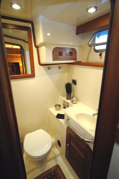 Parkett aus lackiertem Teakholz im ganzen Boot