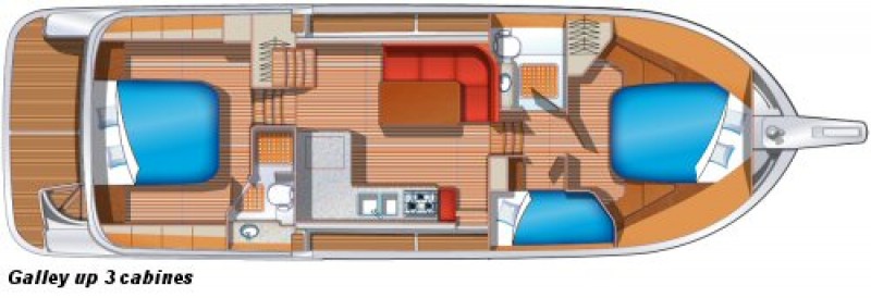 2m x 1,40m queres Bett in Galley down & 2m x 1.40m